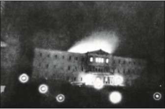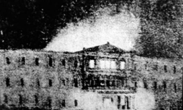 Φωτογραφία της εποχής δείχνει το σημερινό κτίριο της Βουλής να φλέγεται τα Χριστούγεννα του 1909.