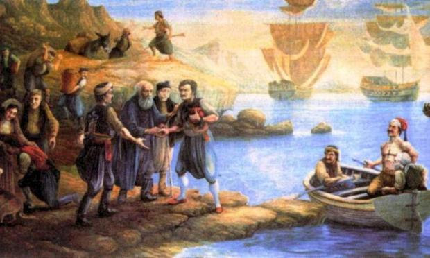 Με αυτά τα λόγια περιγράφει ο συγγραφέας Κωνσταντίνος Κηπιάδης την, κατά την παράδοση, επίσκεψη του Κωνσταντίνου Κανάρη στην Κύπρο, στις 19 Ιουνίου 1821. Σύμφωνα με τα γραφόμενα του Κηπιάδη, και άλλων δύο συγγραφέων,[4] ο «ατρόμητος στολλοκαύτης» ελλιμενίστηκε στο νησί, και συγκεκριμένα στον όρμο της Ασπρόβρυσης, στις ακτές της Λαπήθου. Εκεί, υποστηρίζει ο Κηπιάδης, ο Κανάρης έτυχε παλλαϊκής υποδοχής και έλαβε πλούσια οικονομική συνδρομή από τους Κύπριους, οι οποίοι συνέδραμαν τον αγώνα του 1821 με ό,τι και όπως μπορούσαν, γράφοντας πως έφυγε λαμβάνοντας «ολόκληρα φορτία, τριών φορτηγίδων νηών, πρόβατα και βόας και σίτον και κριθήν και διάφορα άλλα τρόφιμα».[5]