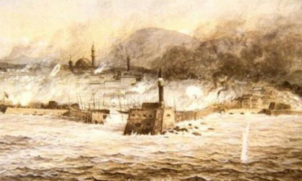 Ο βομβαρδισμός των τούρκικών μαχαλάδων από τα αγγλικά πολεμικά πλοία και το κρέμασμα των τουρκοκρητικών στα καταστρώματα τους.