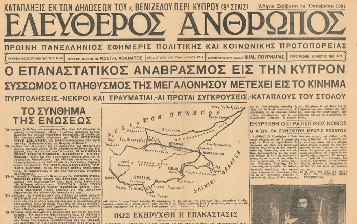 Και εξηγούμε: Από το 1925, η Κύπρος «χρίστηκε» και επίσημα αποικία του βρετανικού στέμματος, οι Τούρκοι αποποιήθηκαν (τυπικά) του ενδιαφέροντός τους για το νησί, την εξουσία είχε ο κυβερνήτης και το Νομοθετικό Συμβούλιο, οι αποφάσεις του οποίου μπορούσαν να ανατραπούν με βασιλικό διάταγμα. Το αποικιακό καθεστώς, που πολύ νωρίς διέψευσε όσους ανέμεναν «ανθρώπινη μεταχείριση» από τους… πολιτισμένους Εγγλέζους, είχε επιβάλει βαριά φορολογία και ο λαός ζούσε υπό οικονομική ανέχεια. Το 1931, ο κυβερνήτης σερ Ρόναλντ Στορς, επέβαλε νέους και βαρύτερους φόρους, το Νομοθετικό Συμβούλιο δεν τους εγκρίνει, πράγμα που ακυρώνει το βασιλικό διάταγμα.