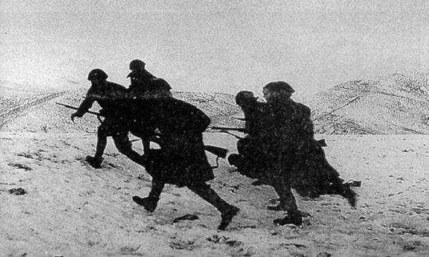 Από τα χαρακώματα τους οι φαντάροι μας αλαλάζουν! Είναι η πρώτη φορά που αντικρίζουν άρματα του εχθρού. Τα πολυβόλα τους αρχίζουν να κελαηδούν. Μέσα στη σκοτεινιά αυτή του πολέμου και την ομοβροντία των επιθέσεων μια ιαχή υψώνεται από παντού. Για πρώτη φορά στον πόλεμο αυτό.