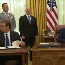 Κόσμος 06.09.2020 - 12:45 0 Έκπληξη Βούτσιτς όταν του ανακοινώνει ο Τραμπ ότι έχει ένα χρόνο να μεταφέρει την πρεσβεία στην Ιερουσαλήμ (βίντεο)Εμφανίζεται να ξεφυλλίζει σαστισμένος τη συμφωνία
