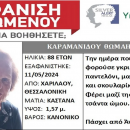 Κοινωνία 13.05.2024 - 17:15 0 Συναγερμός στη Θεσσαλονίκη: Εξαφανίστηκε 88χρονη από την Χαριλάου - Πάσχει από άνοια και η ζωή της βρίσκεται σε κίνδυνοΠρόκειται για την Καραμανίδου Θωμαή, 88 ετών, η οποία εξαφανίστηκε από το σπίτι της, στην περιοχή Χαριλάου,...
