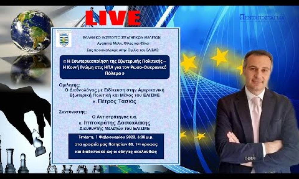 Ομιλητής: Ο Διεθνολόγος με ειδίκευση στην Αμερικανική εξωτερική πολιτική και μέλος του ΕΛΙΣΜΕ κ. Πέτρος Τασιός
