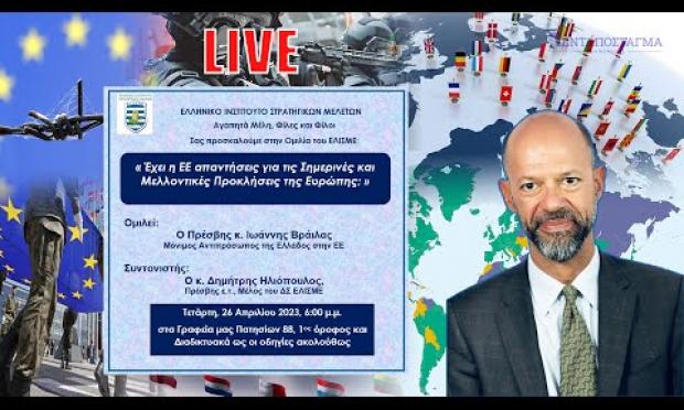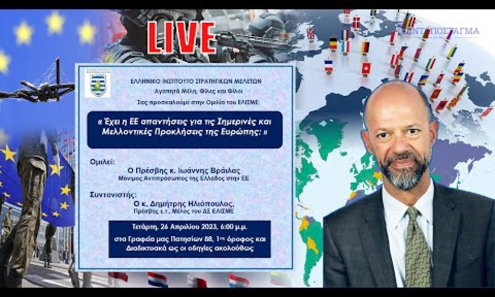 Live: Έχει η ΕΕ απαντήσεις για τις Σημερινές και Μελλοντικές Προκλήσεις της Ευρώπης; FacebookMessengerTwitterLinkedInTelegramE-mail 0 Ομιλεί ο πρέσβης κ. Ιωάννης Βράιλας. Ομιλεί ο πρέσβης κ. Ιωάννης Βράιλας Ακολουθήστε το Πενταπόσταγμα στο Google news