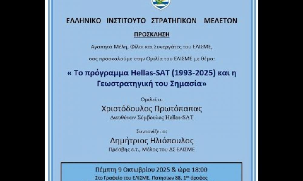 LIVE: Το πρόγραμμα Hellas-SAT και η Γεωστρατηγική του σημασία FacebookMessengerTwitterLinkedInTelegramE-mail 0 Ακολουθήστε το Πενταπόσταγμα στο Google news