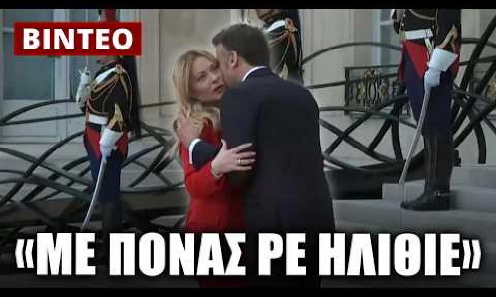 Στο βίντεο φαίνεται η στιγμή που η Μελόνι βγαίνει από το αμάξι της ντυμένη στα κόκκινα με τον Μακρόν να την πλησιάζει