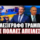 18.10.2025 - 09:00 0 Ο Αμερικανός ΥΠΑΜ απείλησε την Ρωσία με βαρύνουσες συνέπειες αν δεν λήξει τον πόλεμο μέχρι το 2026Ο Αμερικανός υπουργός Πολέμου απειλεί την Μόσχα ότι οι ΗΠΑ θα της «επιβάλουν σοβαρό κόστος» εάν δεν συμφωνήσει σε ...