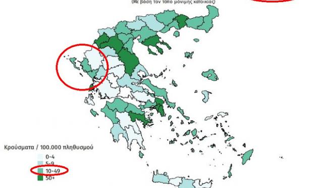 Τις έντονες αντιδράσεις φορέων και κατοίκων προκάλεσε ο χάρτης του ΕΟΔΥ που αποτυπώνει την επιδημιολογική εικόνα του Covid-19 στους νομούς της χώρας. Αφορμή ήταν το γεγονός ότι εμφάνισε τον νομό Θεσπρωτίας στην κατηγορία των περιοχών που έχουν καταγραφεί άνω των πενήντα κρουσμάτων με βάση τον τόπο μόνιμης κατοικίας.