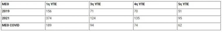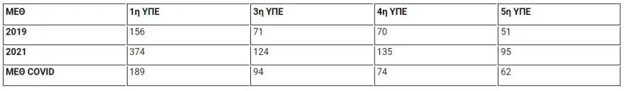Και όλα αυτά σε μια περίοδο που το σύστημα υγείας έχει ενισχυθεί σημαντικά, σε διάστημα δύο ετών. Συγκεκριμένα, σύμφωνα με στοιχεία που παρουσίασε η αναπληρώτρια υπουργός Υγείας, Μίνα Γκάγκα για τα νοσηλευτικά ιδρύματα τεσσάρων υγειονομικών περιφερειών (ΥΠΕ), από τον Σεπτέμβριο του 2019 οι κλίνες ΜΕΘ στα νοσοκομεία έχουν αυξηθεί ως εξής: