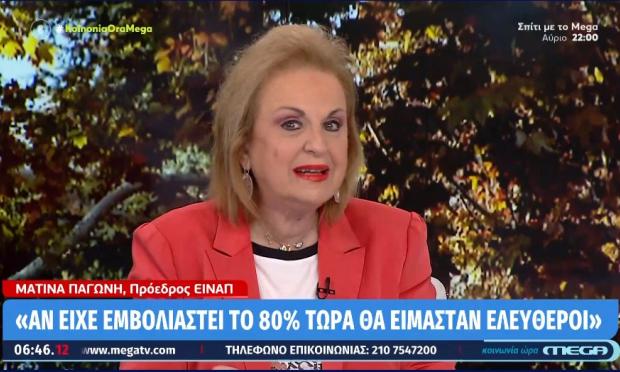 Ως καταστροφικό λάθος χαρακτήρισε το σενάριο ενός νέου lockdown η Ματίνα Παγώνη, Πρόεδρος ΕΙΝΑΠ, και τόνισε πως τα φετινά Χριστούγεννα θα είναι δύσκολα.
