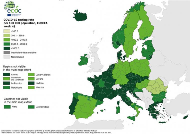 Τέλος, σημειώνεται ότι το ECDC δεν συγκεντρώνει στοιχεία από όλες τις χώρες της Ευρώπης. Αυτές οι χώρες αποτυπώνονται με το λευκό στους χάρτες του.