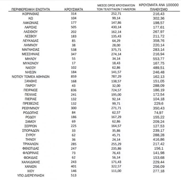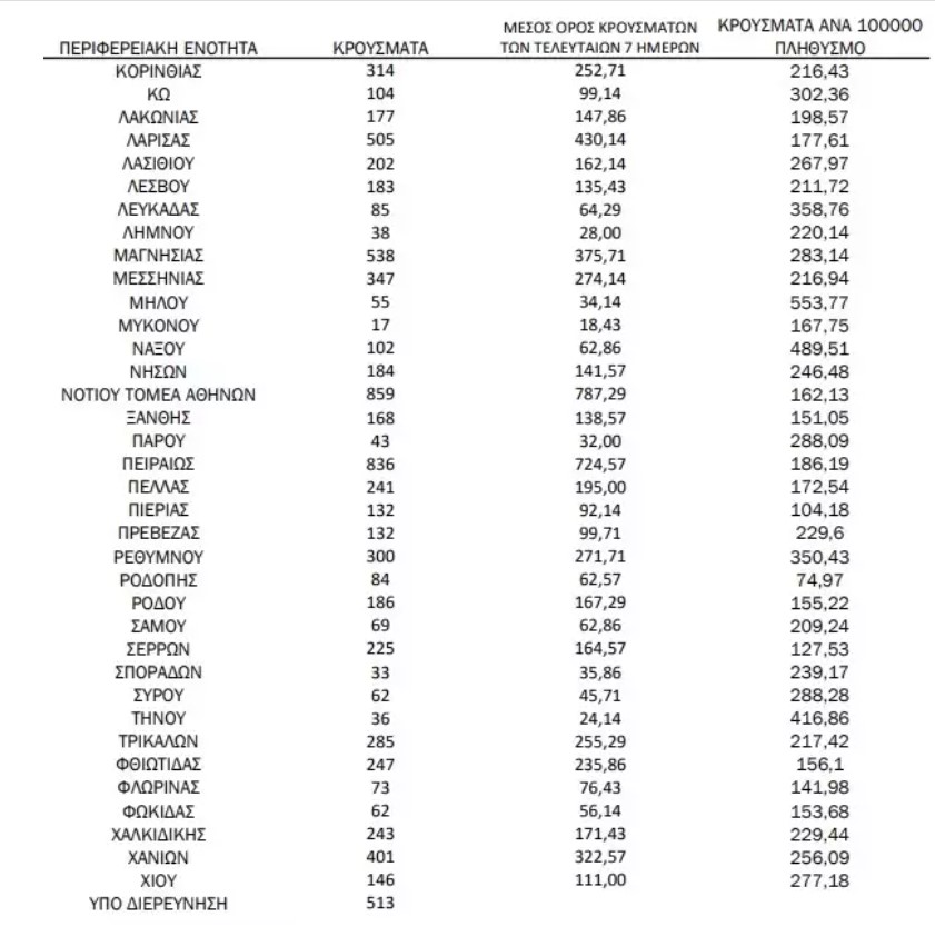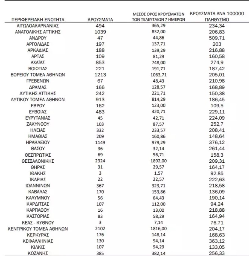 Ειδικότερα, στην Αττική τα κρούσματα κατανέμονται ως εξής: