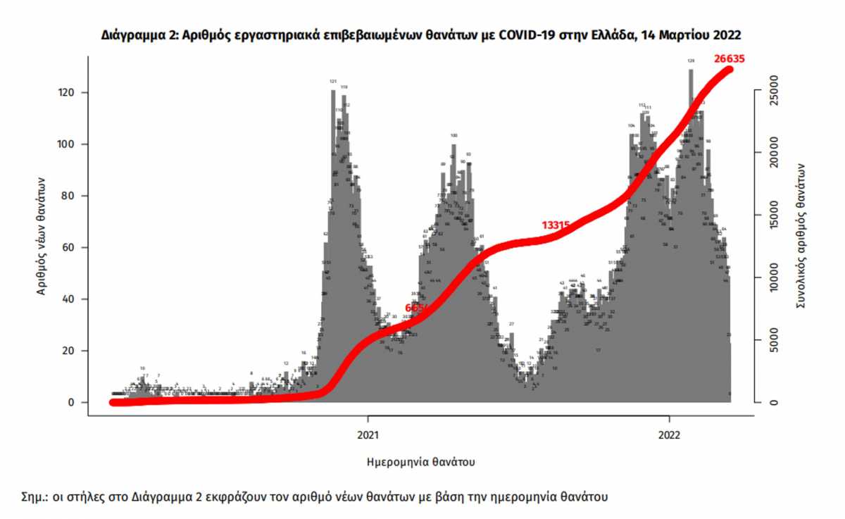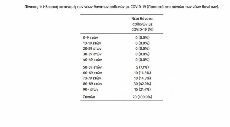 Οι νέοι θάνατοι ασθενών με COVID-19 είναι 70, ενώ από την έναρξη της επιδημίας έχουν καταγραφεί συνολικά 26.635 θάνατοι. 2 Το 95.2% είχε υποκείμενο νόσημα ή/και ηλικία 70 ετών και άνω.
