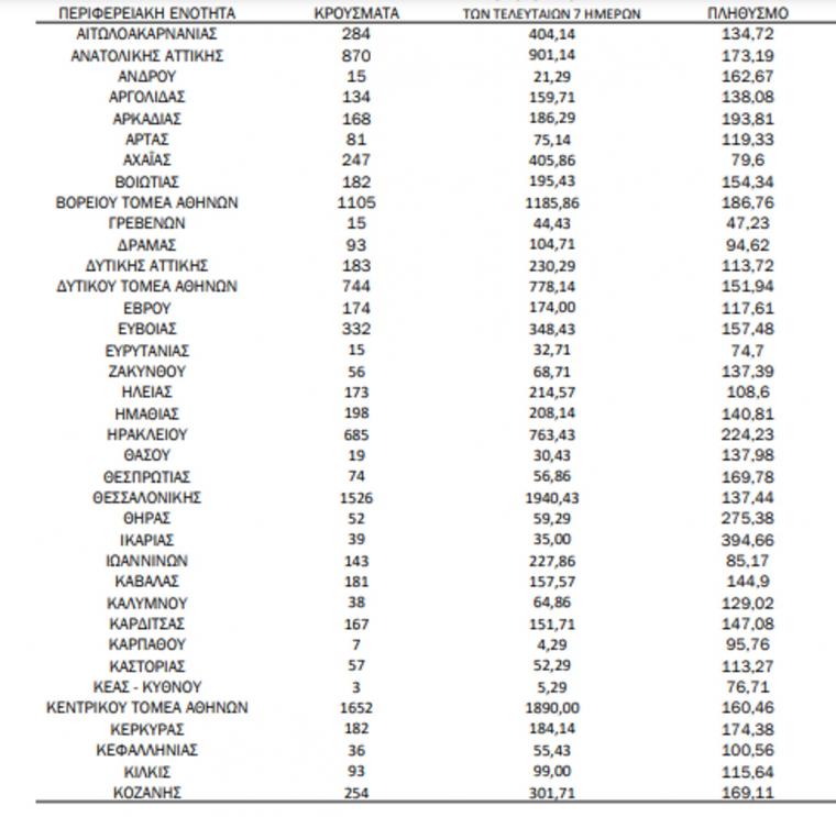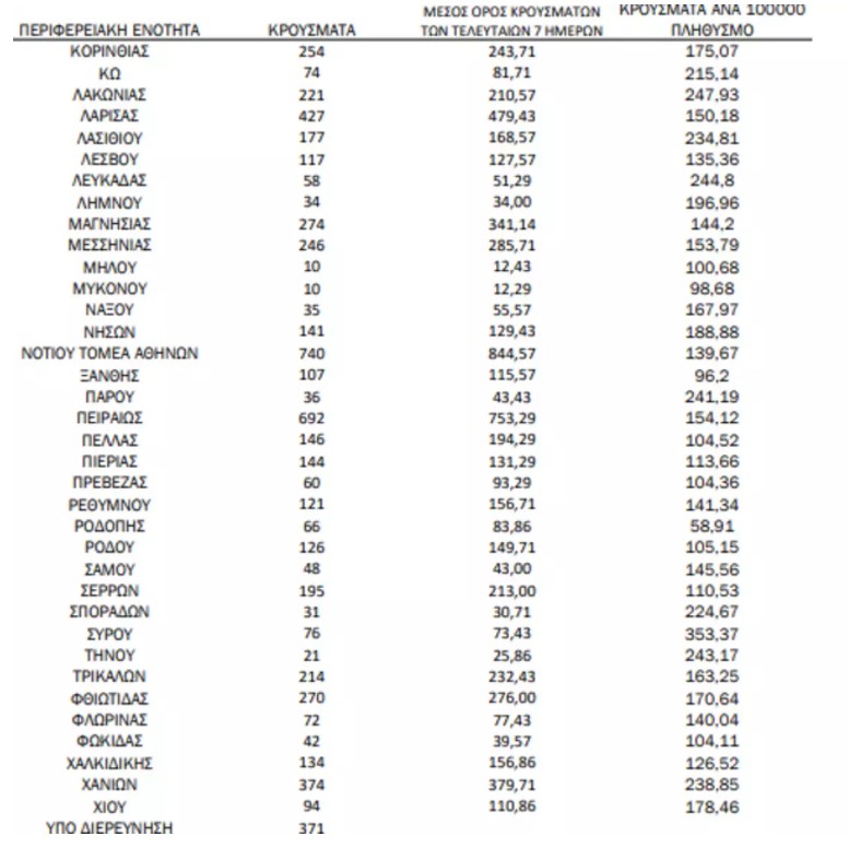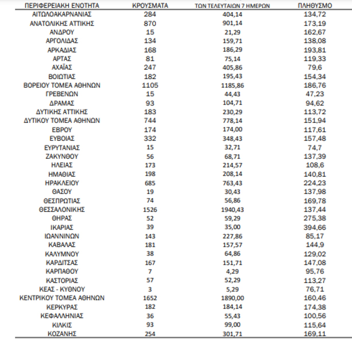 Δείτε αναλυτικά την κατανομή των κρουσμάτων ανά περιοχή: