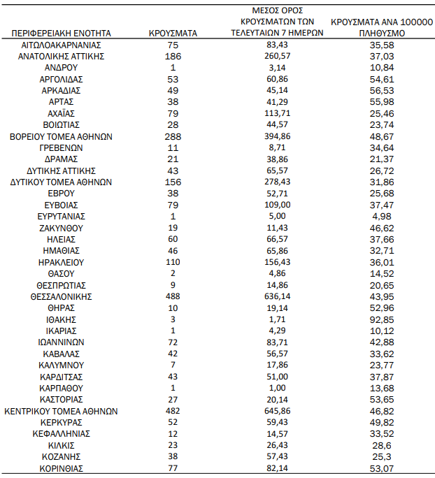 Από το σύνολο των κρουσμάτων τα 1.513 εντοπίστηκαν στην Αττική, τα 488 στη Θεσσαλονίκη.