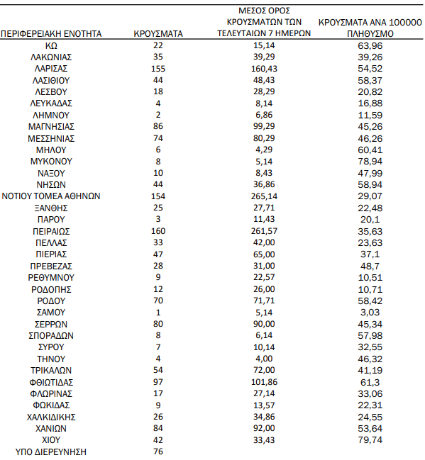 Τέλος, 76 κρούσματα βρίσκονται υπό διερεύνηση.