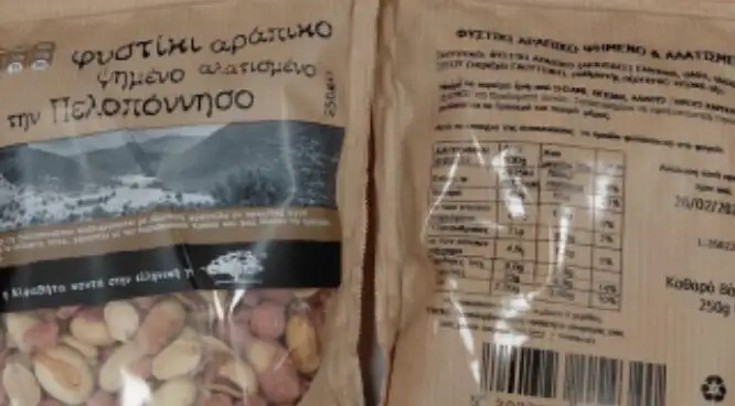 Ο ΕΦΕΤ και ειδικότερα η Περιφερειακή Διεύθυνση Αττικής του ΕΦΕΤ στο πλαίσιο του Προγράμματος ‘Προσδιορισμός της περιεκτικότητας σε αφλατοξίνες Β1, Β2, G1 & G2’, προέβη σε δειγματοληψία του τροφίμου εμπορικής ονομασίας «Φυστίκι αράπικο ψημένο αλατισμένο από την Πελοπόννησο-η Αλφαβήτα κοντά στην ελληνική γη» των 250g με ανάλωση κατά προτίμηση πριν από: 26/02/2027 και αριθμό παρτίδας L260226.