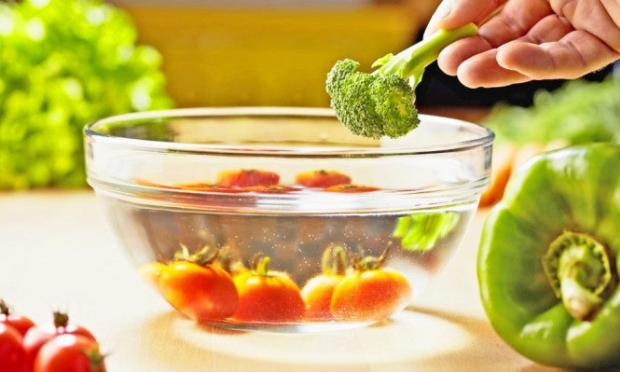 Τέλος, αδειάστε την λεκάνη/νεροχύτη και πλύνετε τα φρούτα και λαχανικά με καθαρό τρεχούμενο νερό.