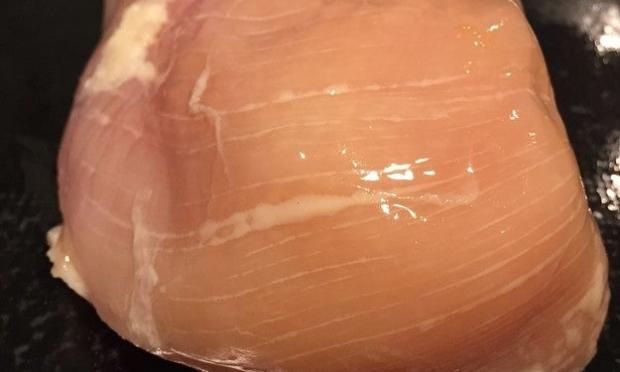 Το πραγματικά άπαχο στήθος από κοτόπουλο δεν έχει καθόλου λευκές ραβδώσεις, αλλά αρκεί να ρίξετε μια πιο προσεκτική ματιά την επόμενη φορά που θα πάτε στο σούπερ μάρκετ για να δείτε πόσο συνηθισμένο είναι πλέον να πωλούνται στα ράφια κομμάτια κοτόπουλου με αυτές τις άσπρες ραβδώσεις.