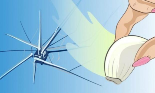 Μπορείτε να επιδιορθώσετε ένα σπασμένο παράθυρο με σκόρδο! Απλά πάρτε μια σκελίδα και κόψτε την στη μέση κατά μήκος. Τρίψτε την κομμένη πλευρά απλά πάνω στο ραγισμένο τζάμι και σκουπίστε τον χυμό του σκόρδου που περισσεύει με ένα κομμάτι χαρτί κουζίνας.