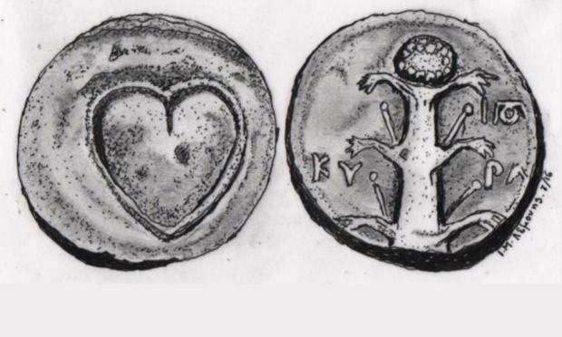 Κι όμως, η πρώτη ποτέ παρόμοια αναπαράσταση μας έρχεται από το ασημένιο νόμισμα της Κυρήνης του 6ου-5ου αιώνα π.Χ., εκεί δηλαδή όπου ο σπόρος/καρπός του σίλφιου παραμοιάζει με το οικουμενικό σύμβολο της αγάπης και του έρωτα! Κι έτσι αρκετοί ιστορικοί τοποθετούν τη γέννησή του πολύ πριν από τον Μεσαίωνα και συγκεκριμένα κάπου, κάπως, κάποτε στην Κυρηναϊκή.