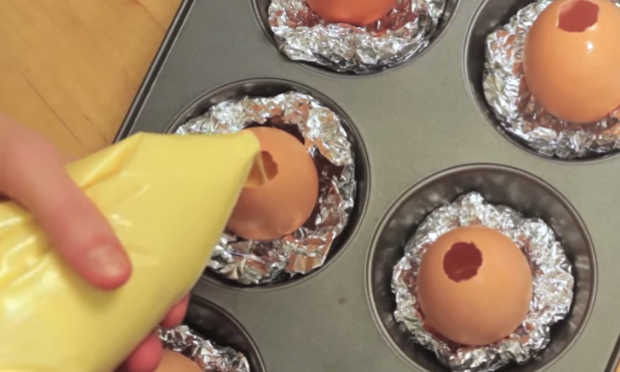 Γεμίζει άδειο αυγό με βούτυρο κέικ και αυτό που φτιάχνει… δεν το είχα ξαναδεί.