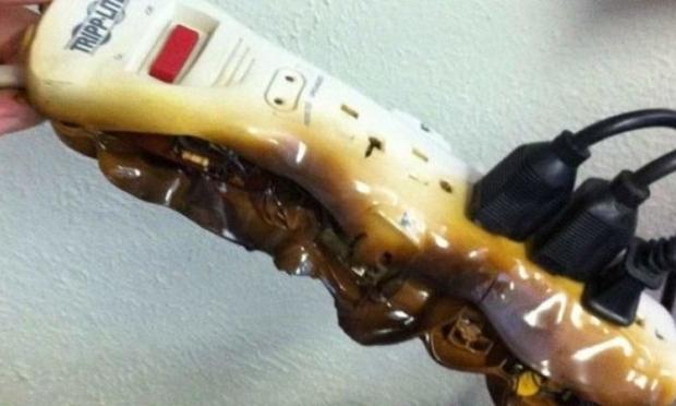 Όπως δείχνει η φωτογραφία τους από ένα καμένο πολύπριζο, οι συνέπειες μπορεί να είναι καταστροφικές.
