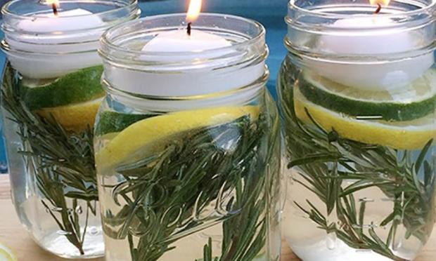 Προσθέστε 10 σταγόνες από κάθε αιθέριο έλαιο στα βάζα και βάλτε ακόμα ένα κλαράκι δενδρολίβανο.