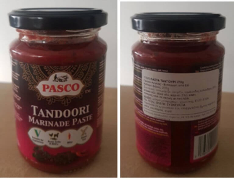 Το προϊόν που ανακαλείται από τον ΕΦΕΤ, είναι η πάστα με την εμπορική ονομασία «Pasco Tandoori Marinade Paste», σε γυάλινο βάζο των 270g, με αριθμό παρτίδας 811170 και ημερομηνία ανάλωσης κατά προτίμηση πριν από 30.11.2021. Το εν λόγω προϊόν διακινήθηκε από την επιχείρηση «Asiana Ltd» (Κορινθίας 24, ΤΚ 115 26, Αθήνα).