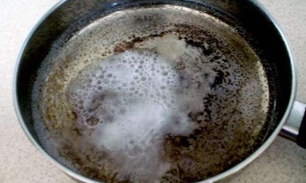 * Για πιο δύσκολες περιπτώσεις, όπως καμμένα λίπη στη βάση, βυθίστε το τηγάνι για περίπου μία ώρα σε ένα μίγμα βραστού νερού με μία κουταλιά της σούπας μαγειρική σόδα και ένα ποτήρι ξίδι. Στη συνέχεια, χωρίς να ξεπλύνετε το τηγάνι, το καθαρίζετε πρώτα με ένα σφουγγαράκι, μετά με λίγο σαπούνι και voila!