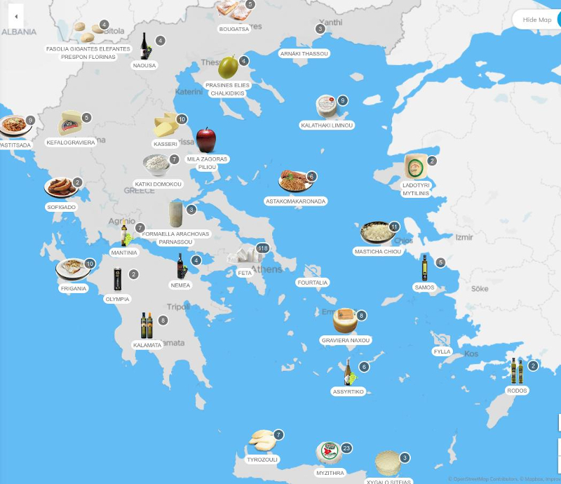 Κάθε τόπος φημίζεται για ένα προϊόν του και μάλιστα δεν είναι λίγα εκείνα τα ελληνικά προϊόντα που κάνουν θραύση και πέρα από τα σύνορα, όπως στην Αίγυπτο. Από τη βόρεια μέχρι τη νότια Ελλάδα, παράγονται προϊόντα, με κάθε περιοχή να βασίζεται στις παραδόσεις και να προχωρά τη διαδικασία παραγωγής με τον δικό της τρόπο. Κάποια από αυτά ξεχωρίζουν μιας και υπάρχει η μαεστρία, το μυστικό που κάνει το συγκεκριμένο προϊόν λίγο πιο ιδιαίτερο, πιο αξέχαστο στον ουρανίσκο. Σε έναν, λοιπόν, χάρτη, τον TasteAtlas, όπως ονομάζεται, υπάρχουν τα πιο φημισμένα προϊόντα κάθε περιοχής.
