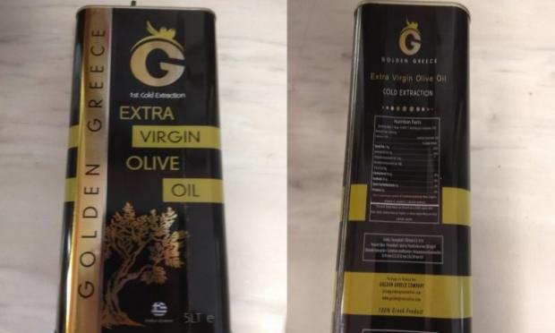 Πρόκειται για το εξαιρετικό παρθένο ελαιόλαδο, με την εμπορική ονομασία «GOLDEN GREECE», σε μεταλλική συσκευασία των 5 λίτρων, το οποίο επί της συσκευασίας αναγράφει ότι είναι 100% ελληνικό προϊόν και δεν αναγράφονται ημερομηνία ανάλωσης και αριθμός παρτίδας, επωλείτο από το κατάστημα Ιονίδης Διονύσιος (Νέο Συρράκο 35 στην Ελευθερούπολη Καβάλας) και αγοράσθηκε από την Golden Greece LTD, (Import-Export, Ul. Han Krum 40 str., 8000 Burgas Bulgaria).