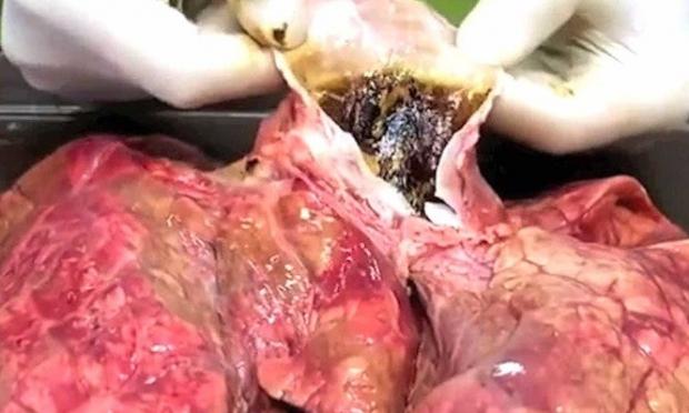 Οι υγιείς πνεύμονες έχουν ανοικτό ροζ χρώμα, ενώ οι πνεύμονες ενός καπνιστή έχουν σκούρο χρώμα και στίγματα οφείλονται στην εισπνεόμενη πίσσα από το τσιγάρο. Η υφή των δύο διαφέρει επίσης, με τον κατεστραμμένο πνεύμονα να είναι πολύ πιο σκληρός και “εύθραυστος” σε σχέση με τον υγιή.